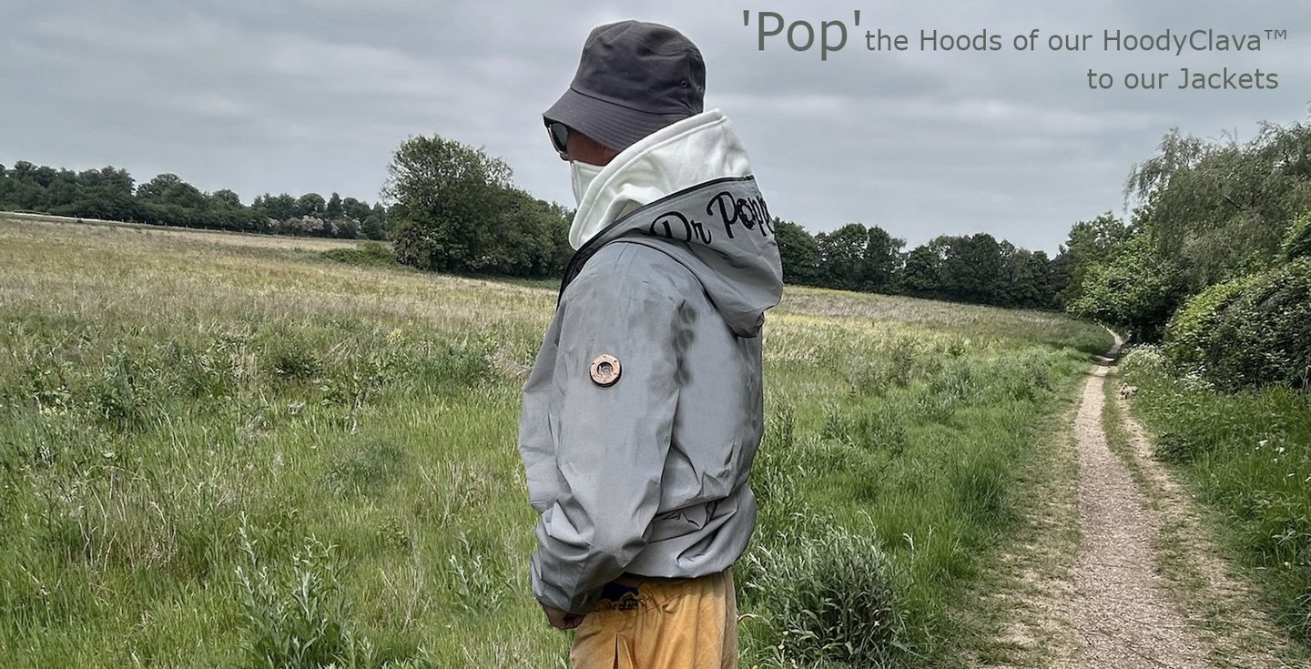 'Pop' the hoods on our BallyHoodys™ and Hoodyclavas™ (sold seperately) to the hoods of our reflective jackets. Two positions are available to either keep the hood firmly over your face keeping the rain out. Or, when it clears up pop it back a notch top keep the hood from obscuring your view.