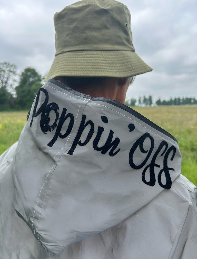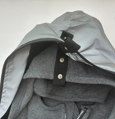 Featuring our Signature Popper and if ordered at the same time you can pop the hoods on our BallyHoodys™ and Hoodaclavas™ (sold seperately) to the hoods of our reflective jackets. Two positions are available to either keep the hood firmly over your face keeping the rain out. Or, when it clears up pop it back a notch top keep the hood from obscuring your view.